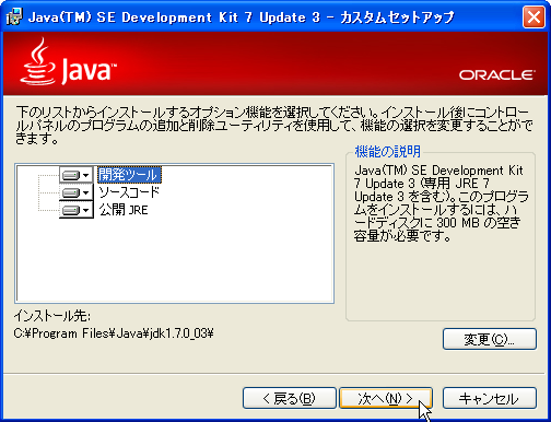 1.「jdk-7u3-windows-i586.exe」を実行します。
