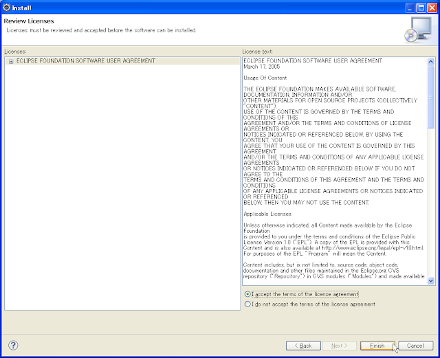 1.「I accept the terms of the license agreement」を選択。